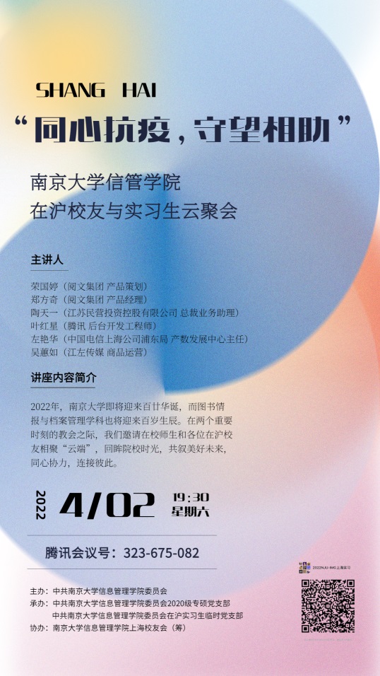 在沪校友、实习生及在校师生迎来一场特别的云端聚会。120余名南大信管人通过线上分享和互动,打破地域限制,回首校园时光,交流职场经验,探讨合作前景,在新冠肺炎疫情防控形势严峻之际,彼此温暖守护,互相鼓劲加油。