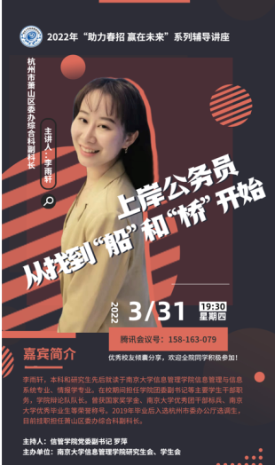 3月下旬以来,学院党委策划一系列“助力春招 赢在未来”系列辅导讲座,学院兼职辅导员、校党办王维嘉老师及多位优秀校友、名企HR相继线上开讲或模拟面试。学院党委组建待就业本科生帮扶专班,分管副院长邓三鸿,系主任张志强、胡广伟、康乐乐,以及颜祥林、石进、王鹏涛、司徒凌云、闵超等专业教师,组建班主任、德育导师和辅导员协同队伍,从修改简历、生涯咨询到面试指导,积极投入结对帮扶工作。其中绝大多数为党员教师。让人欣慰的是,迄今已有多位同学顺利拿到offer或积极调整就业心态。