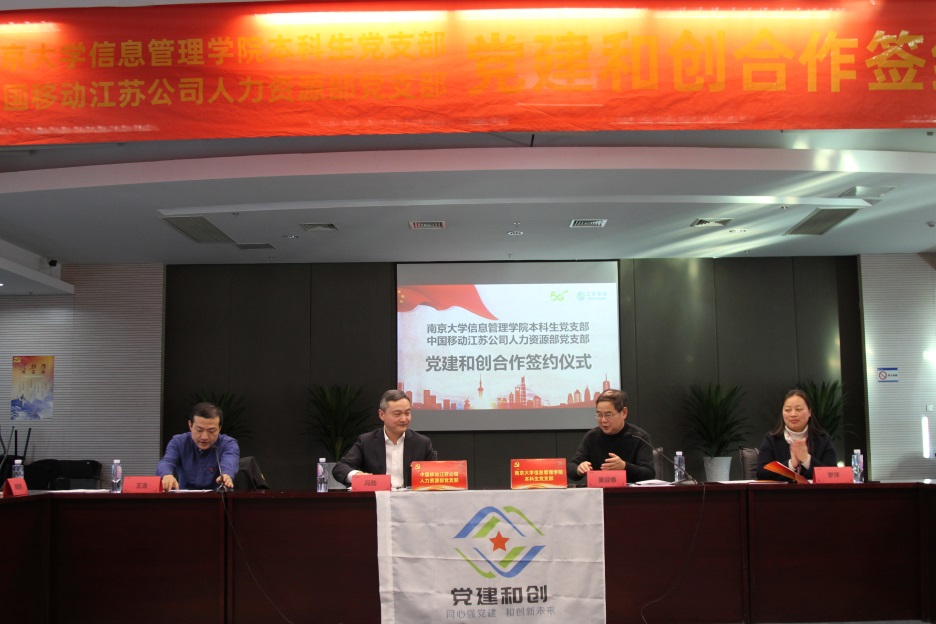 党委组织师生代表30余人赴中国移动通信集团江苏有限公司人力资源部开展“党建合创”结对共建活动。双方签署了结对共建协议和共建大学生实习实训基地协议。这是在“不忘初心、牢记使命”主题教育中,继参观金陵石化后,学院党委“走进知名国企,感受新中国建设成就”系列国情教育活动的第二站,是学院党委拓展校外党建教育资源、校企双方融合共建的新举措。