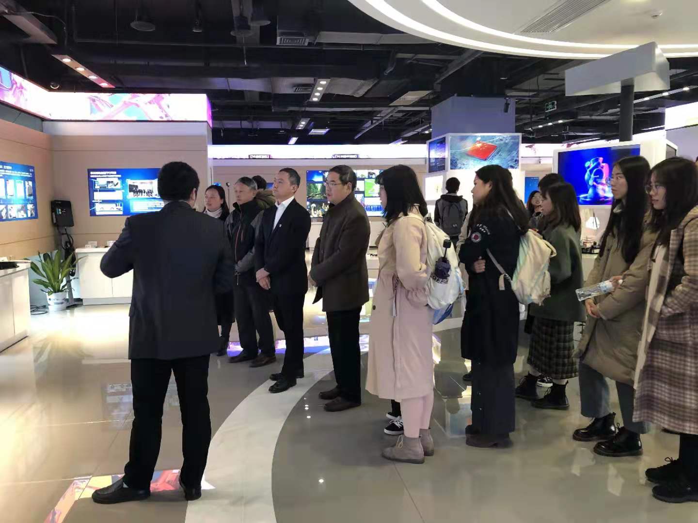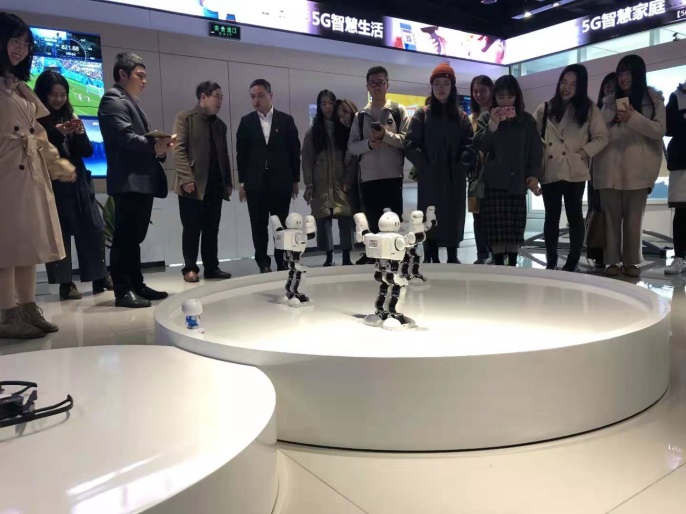 接着师生们又参观了以展示5G技术为主要内容的大连接展厅和联合创新实验室。从智能迎宾机器人到5G技术支撑下的智慧城市建设,师生们更加直观感受到新技术革命背景下中国社会经济的发展大势和蓬勃生命力。正如党的十九大报告所指出,加强应用基础研究,拓展实施国家重大科技项目,突出关键共性技术、前沿引领技术、现代工程技术、颠覆性技术创新,为建设科技强国、质量强国、航天强国、网络强国、交通强国、数字中国、智慧社会提供有力支撑。