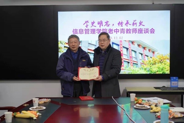 举办了以“学史明志,传承薪火”为主题的老中青教师座谈会。从50后到90后,十余位成长工作于不同年代的信管人欢聚一堂,共话学院发展。座谈会上同时举行了“学院青年教师成长导师”聘任仪式。