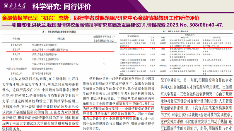 ● 丁晓蔚,苏新宁.金融情报学:情报学的重要分支学科[J].情报学报(学科卓越期刊、国自然管理学部A类),2020,39(02):158-170.
