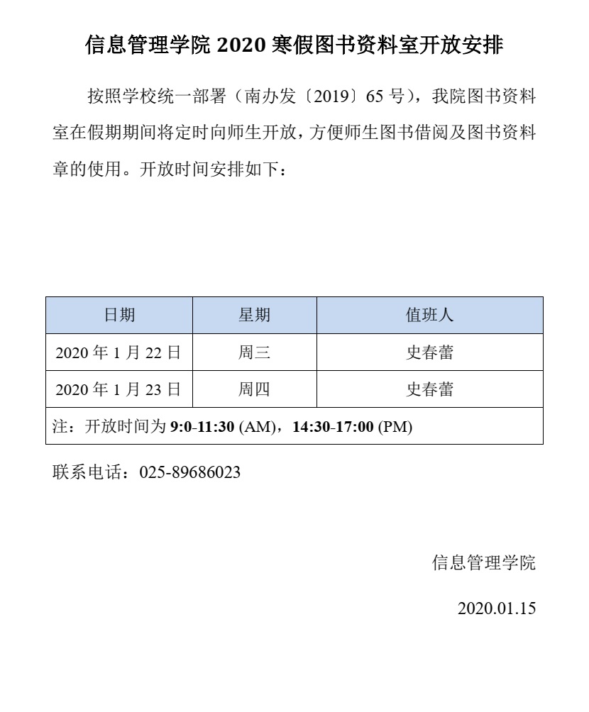 休闲小栈 2020寒假图书资料室开放安排