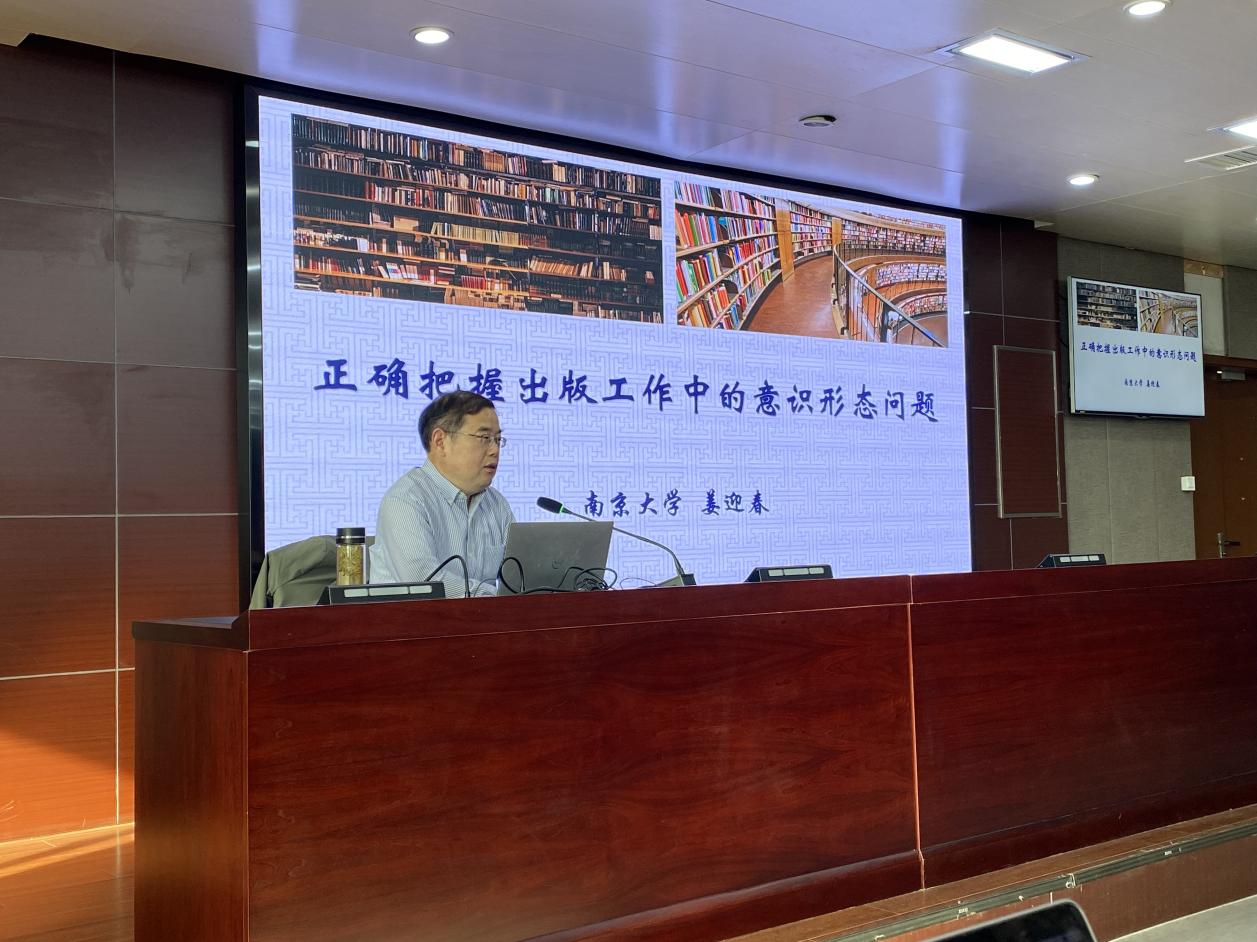 本次讲座,姜迎春书记主要从出版工作的意识形态功能、我国出版领域存在的意识形态问题、学科意识形态问题对出版工作的渗透侵蚀、积极应对出版工作面临的意识形态挑战四个部分来展开。