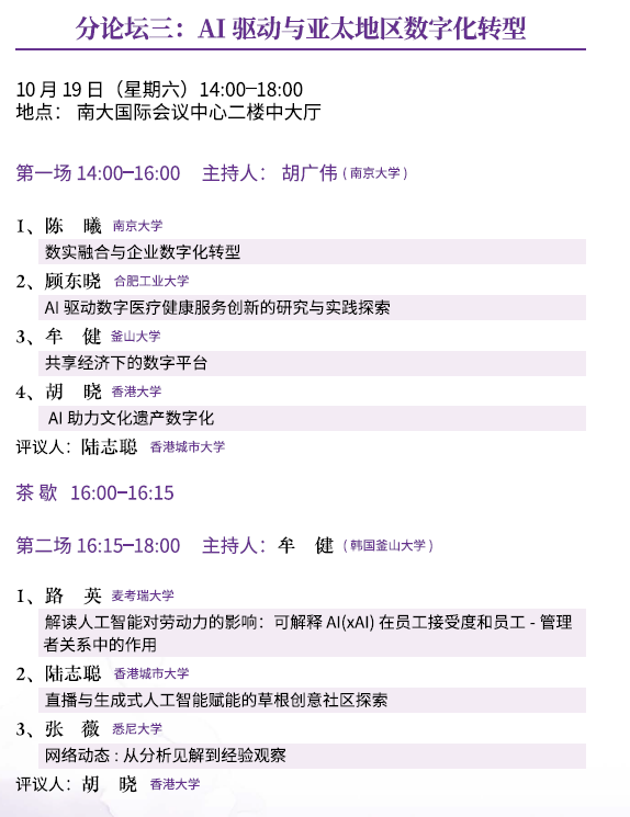 将承办“分论坛三:AI驱动与亚太地区数字化转型”,分论坛三邀请国内外高等学校和科研院所的多位专家学者参会,围绕相关议题进行深入对话和研讨。