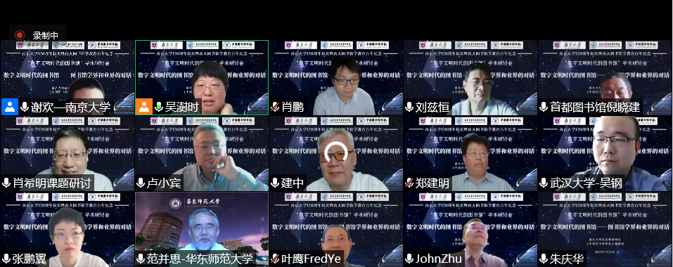 、北京大学、武汉大学、中山大学、中国人民大学、国家图书馆、华东师范大学、澳门大学、深圳北理莫斯科大学、复旦大学等机构的二十余位专家学者以及全国各图书馆、图书情报系科的三百余人在线参加了会议。