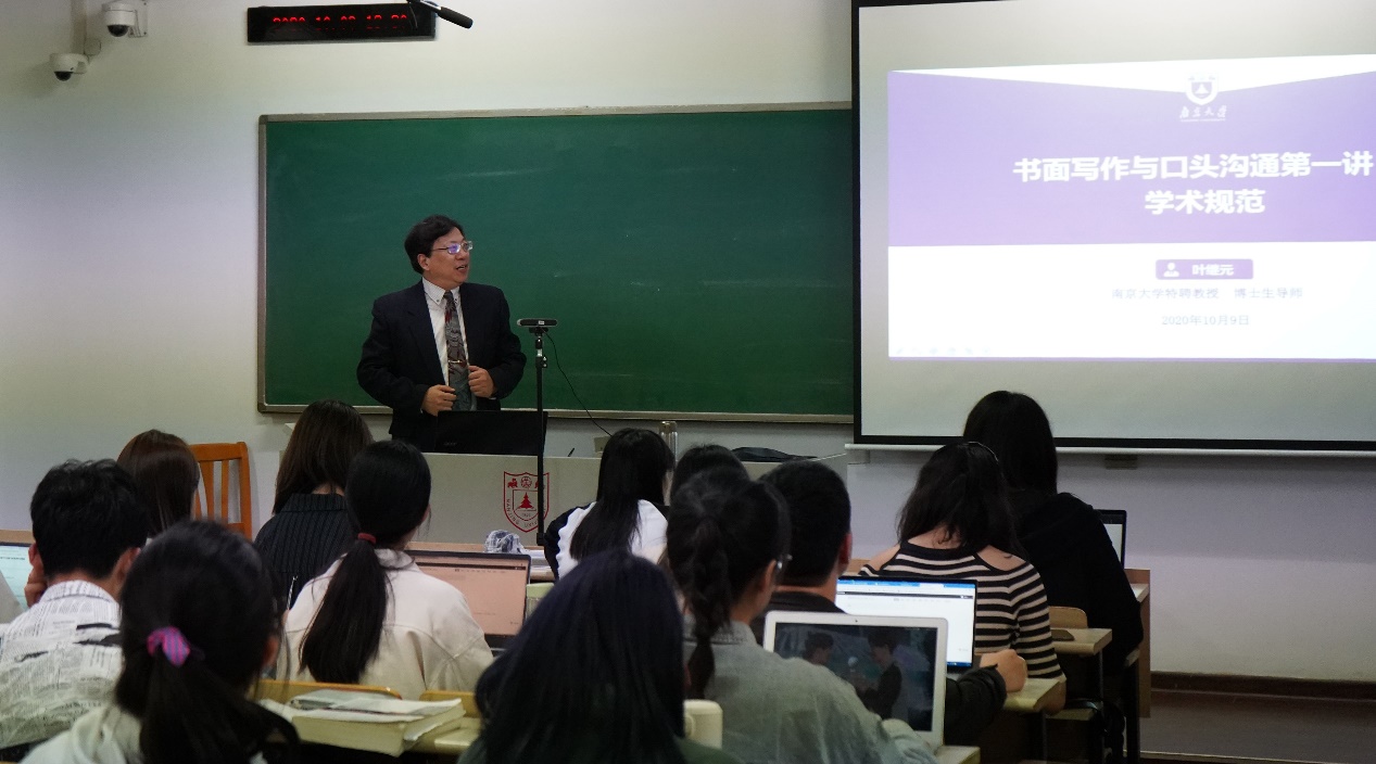 博士生导师叶继元教授负责。叶继元教授围绕何为学术规范、何为基本规范、基本规范对学术写作的指导作用三个问题,深入浅出、辅以生动案例向五所高校本科生讲授了相关知识。叶继元教授指出:“学术规范不仅仅是科学实验或论文写作中的数据真实、不抄袭、