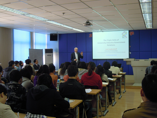 2013年11月4日,荷兰阿姆斯特丹大学Loet Leydesdorff教授来访,在鼓楼校区向南大师生阐述了由他创建的“三螺旋(Triple Helix)” 理论及相关应用。