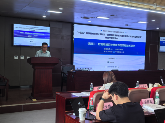 副院长胡广伟介绍各位参会嘉宾,并就项目的进展情况作简要汇报。他表达对各位参会专家、项目组成员的热烈欢迎,并指出,该项目是我国图书馆学领域首个获批的国家重点研发计划,具有重要的示范意义,不仅展现了国家对智慧图书馆建设的高度重视,也标志着该领域正在从理论研究迈向关键技术突破与应用示范的新阶段。