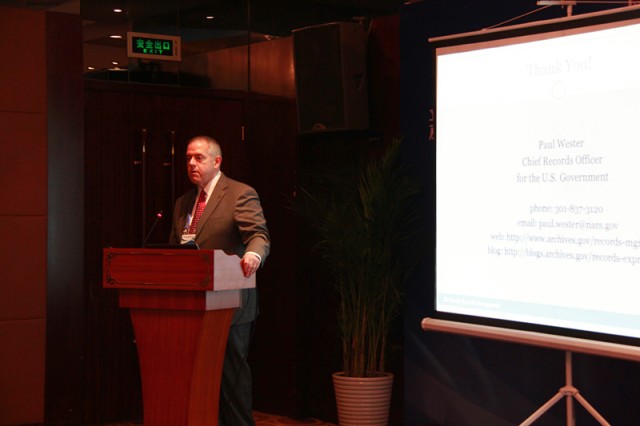 M·Wester、英国标准协会文档应用管理委员会主席Alan Shipman、国际标准化组织档案/文件管理分技术委员会主席澳大利亚David Moldrich、中国人民大学安小米教授分别作了题为“美国联邦政府电子文件管理标准和政策发展”、“电子文件数字化保存国际标准”、“RIMA – IAM 文件管理行业及其标准发展”和“