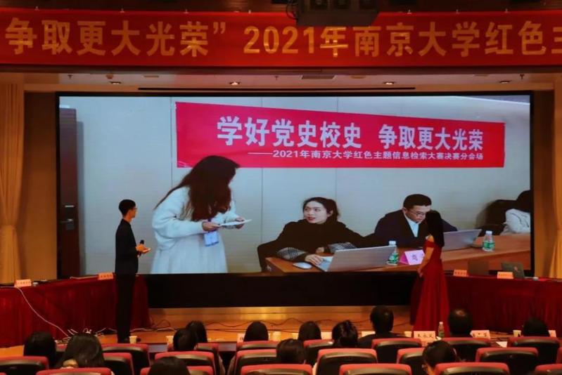 晚上7点,在图书馆报告厅主会场,大赛决赛在“南大校史中的红色记忆”回顾视频和本届大赛纪实短片中正式拉开帷幕。