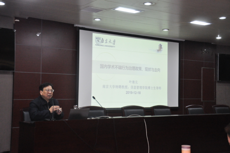 随后,叶继元教授作了“国内学术不端行为治理政策、现状与导向”的专题讲座。他指出,目前关于学术不端的研究主要集中在以下领域:信息资源建设、期刊研究、引文分析、学术评价、学术规范等。并为同学们介绍了相关的平台与项目以及国家有关政策文件。随后,他用具体的实例讲授了关于学术不端的具体行为以及相关惩罚措施。接着,他介绍了评价学术成果的相关标准,并对不同的评价方法进行了比较与分析。最后,他以古语“为今日计,惟在明学术,掌术明则人才兴,则风俗正而治化翔洽矣”作为本次讲座的结尾,并激励全体同学共同为学术诚信努力!